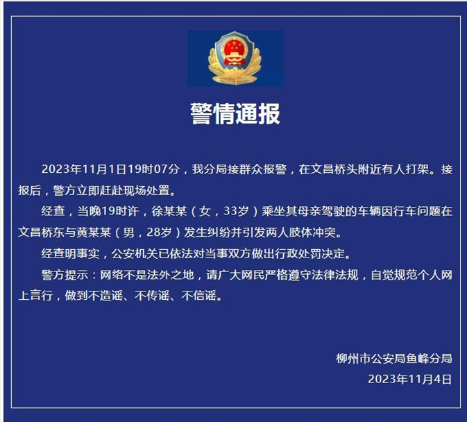 ·柳州警方通報女子疑路怒咬掉男子一塊肉:行車糾紛引發(fā)肢體沖突,對雙方做出行政處罰。