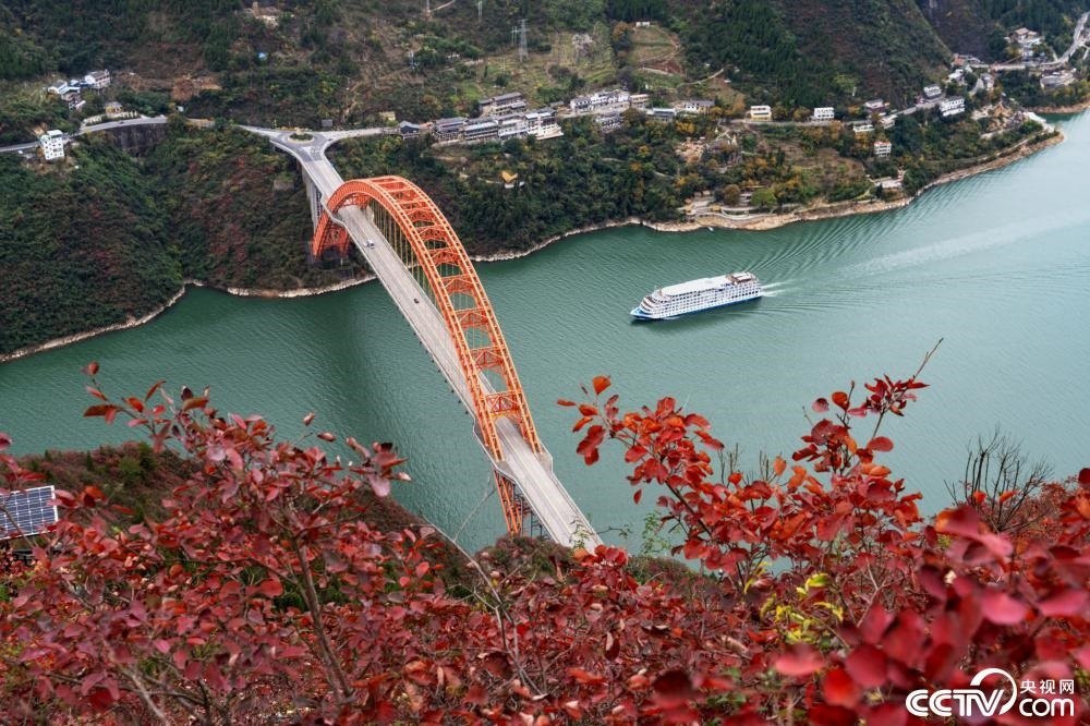初冬時(shí)節(jié),長(zhǎng)江三峽重慶市巫山縣水域兩岸色彩斑斕,紅葉正艷,美如畫卷。
