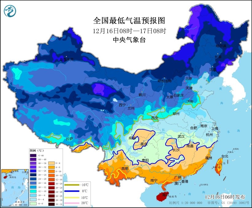 中央氣象臺12月16日06時(shí)發(fā)布寒潮藍(lán)色預(yù)警