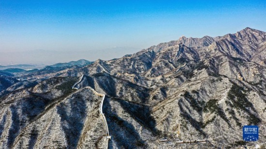 近期,北京迎來降雪。雪后的八達嶺長城銀裝素裹,美景如畫。