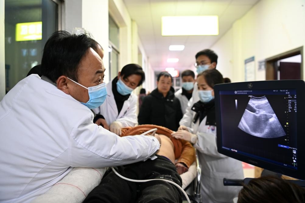 12月19日,在甘肅省臨夏回族自治州積石山縣人民醫(yī)院,地震傷員接受診療。新華社記者 范培珅 攝