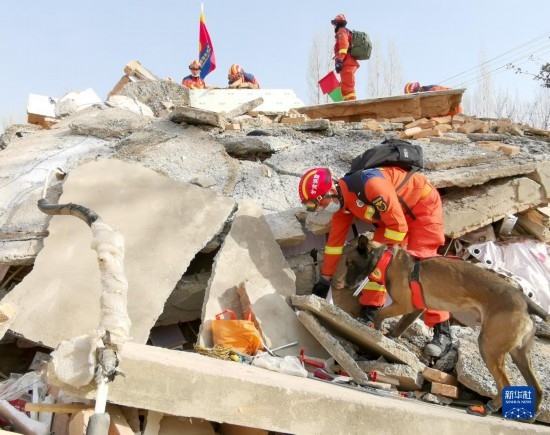 12月19日,救援人員在甘肅省臨夏州積石山縣大河家鎮(zhèn)進(jìn)行救援。