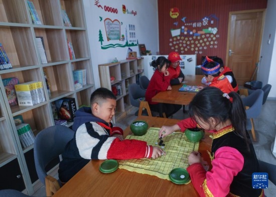 12月20日,秀山小學(xué)學(xué)生在“民生小鋪”等候家長(zhǎng)時(shí)下棋。
