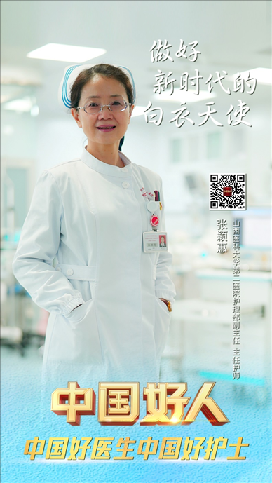 張穎惠,女,1971年12月生,中共黨員,山西醫(yī)科大學(xué)第二醫(yī)院護(hù)理部副主任、主任護(hù)師,第49屆南丁格爾獎?wù)芦@得者。從事護(hù)理工作30多年,她始終撲在一線,面對重大突發(fā)事件第一時間挺身而出;她帶領(lǐng)同事們不斷創(chuàng)新護(hù)理技術(shù),探索危重患者查房模式,構(gòu)建護(hù)理質(zhì)控體系;她積極為貧困地區(qū)、基層醫(yī)療機(jī)構(gòu)送知識、送技術(shù)、送教育、送專業(yè),用實(shí)際行動詮釋了新時代白衣天使的使命與擔(dān)當(dāng)。
