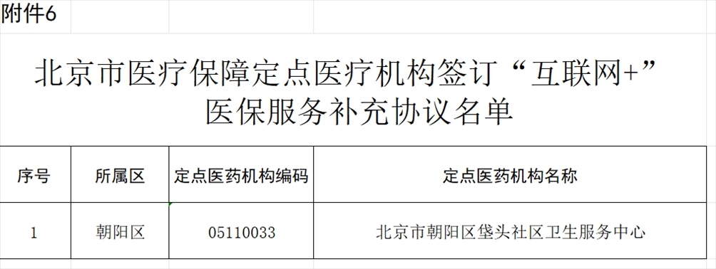 北京市朝陽區(qū)垡頭社區(qū)衛(wèi)生服務中心申請開展“互聯(lián)網(wǎng)+”醫(yī)保服務,經(jīng)市、區(qū)醫(yī)保經(jīng)辦機構審核并通過信息系統(tǒng)業(yè)務驗收,該定點醫(yī)療機構符合“互聯(lián)網(wǎng)+”醫(yī)保服務條件,簽訂《<北京市基本醫(yī)療保險定點醫(yī)療機構服務協(xié)議書>“互聯(lián)網(wǎng)+”醫(yī)保服務補充協(xié)議》,為參保人員提供北京市醫(yī)療保障“互聯(lián)網(wǎng)+”醫(yī)保服務(見附件6)。