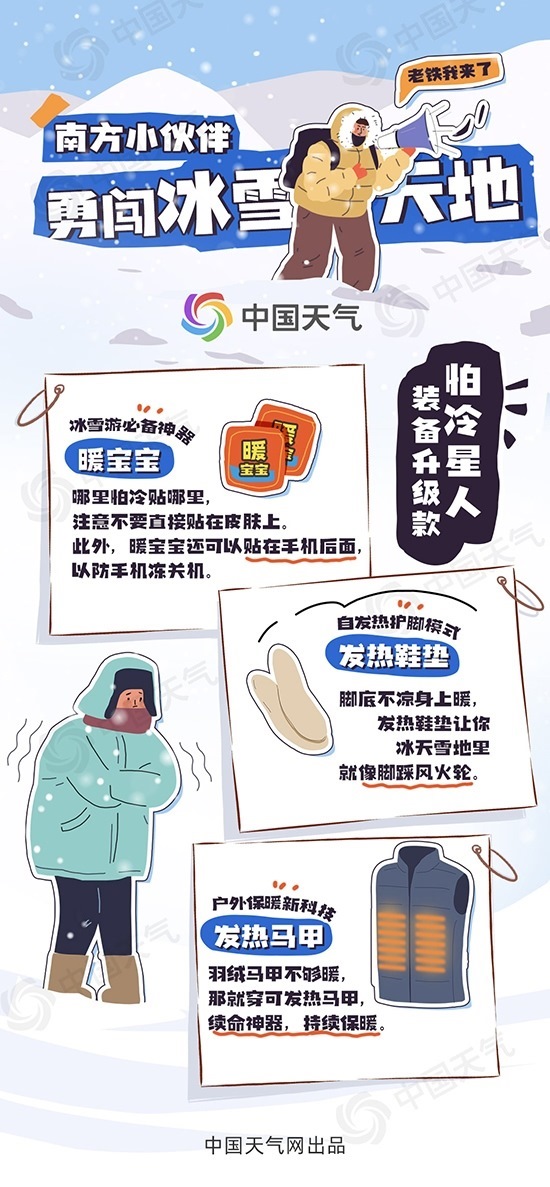 央視網(wǎng)消息:據(jù)中國天氣網(wǎng)訊,“哈爾濱凍梨都擺盤了”、“鄂倫春族驚現(xiàn)中央大街”、“爾濱,又整活兒了”……這個冬季,哈爾濱爆火出圈,成為新晉“頂流”,帶火了一眾冰雪旅游地。隨著寒假的到來,預(yù)計又有一大批來自各地的小土豆、小橘子、小辣椒將勇闖冰雪世界。但東北旅游真不是說走就能走的,-20℃甚至-30℃的氣溫分分鐘教你認清現(xiàn)實。中國天氣網(wǎng)推出東北旅游防寒保暖攻略,一圖掌握冰雪游防凍保命穿搭。