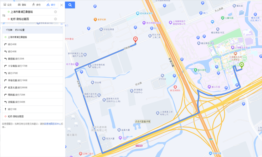 記者與陳陽陽取得了聯(lián)系,他發(fā)來3張逆行路線截圖,都是他這幾天日常送餐中遇到的。一單為從蟠龍?zhí)斓厮屯m韻文化中心,平臺規(guī)劃的騎行路線為先沿潘鼎路向南抵達崧澤高架路,再沿著崧澤高架路北側(cè)輔道向東,抵達蟠龍路后再向南……“崧澤高架北側(cè)輔道只能由東向西行駛,平臺讓沿著輔道向東騎行,這不是在逆行嗎?”陳陽陽稱,合理的路線應沿潘鼎路向北,接著從龍聯(lián)路向東,再從蟠龍路向南,但這樣繞一圈會增加300米。