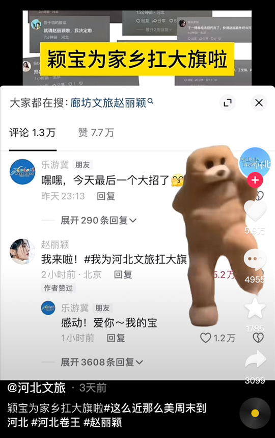 這還還還不夠,河北文旅也“搖人”了,趙麗穎、孫穎莎等一眾名人被請(qǐng)了過來為家鄉(xiāng)助力!