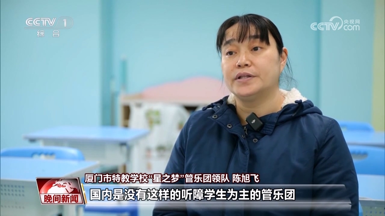廈門(mén)市特教學(xué)?!靶侵畨?mèng)”管樂(lè)團(tuán)領(lǐng)隊(duì) 陳旭飛:據(jù)我所知的話,國(guó)內(nèi)是沒(méi)有這樣的聽(tīng)障學(xué)生為主的管樂(lè)團(tuán)。