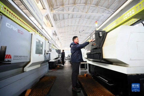 12月21日,在位于隆堯縣的河北遠大閥門集團有限公司鍛鋼高端定制車間,工人操控智能設備加工閥門產(chǎn)品。