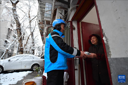 1月21日晚到22日晨,湖南長沙城區(qū)迎來2024年首場降雪。針對行動不便的高齡、失能、殘障等獨(dú)居老人,長沙市天心區(qū)裕南街街道聯(lián)合外賣騎手志愿者為老人免費(fèi)送餐上門,解決獨(dú)居老人在低溫雨雪天氣時的就餐難題。
