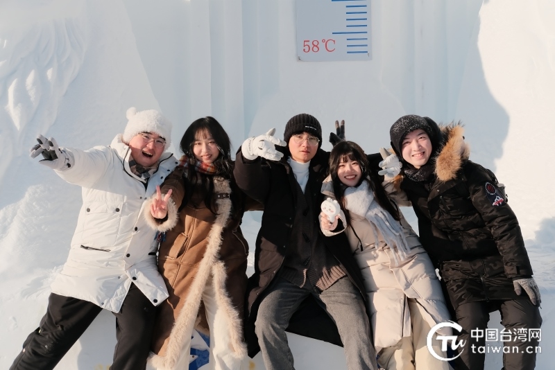 1月26日,2024年全國臺(tái)聯(lián)第三十屆臺(tái)胞青年冬令營內(nèi)蒙古分營一行人前往呼倫貝爾市根河市冷極村,右二為陳紀(jì)陵。(臺(tái)灣同學(xué) 王奕勛 攝)