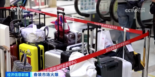 除了工廠訂單增加之外,服裝批發(fā)市場也迎來“開門紅”,在深圳南油服裝批發(fā)市場,人頭攢動,店鋪門口都堆疊著即將發(fā)貨的大包小包。
