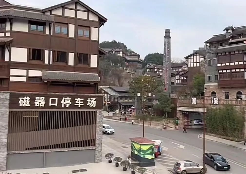 網(wǎng)友于工作日拍攝的磁器口停車場,沒有圍欄。