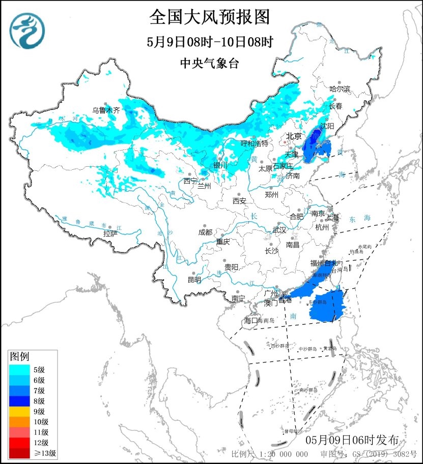 需要注意的是,今明兩天,北方部分地區(qū)風力加大,中央氣象臺今晨繼續(xù)發(fā)布大風藍色預警。預計遼寧中北部、吉林中部、內蒙古大部、新疆東部和南疆盆地、青海西部、甘肅西部、寧夏大部、陜西北部、河北南部等地的部分地區(qū)有5~6級、陣風7~9級的大風。