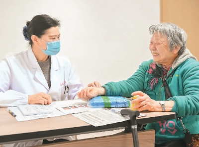 安徽省合肥市廬陽區(qū)養(yǎng)老服務(wù)指導中心與安徽中醫(yī)藥大學門診部(國醫(yī)堂)醫(yī)聯(lián)體合作揭牌,該醫(yī)聯(lián)體開設(shè)中醫(yī)科門診,助力老年群體樂享健康的晚年生活。圖為安徽中醫(yī)藥大學門診部(國醫(yī)堂)專家(左)為廬陽區(qū)老年人義診治療。袁 兵攝(人民圖片)