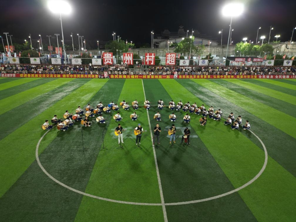 遼寧東港草莓足球隊(duì)帶來(lái)嗩吶表演、中山大學(xué)鳳慶滇紅茶足球隊(duì)帶來(lái)蘆笙舞、畢節(jié)南山羊肉粉足球隊(duì)帶來(lái)彝族舞蹈……在“帶著非遺上村超”“來(lái)村超約場(chǎng)球”等活動(dòng)的聚力匯智作用下,榕江攜手各地推動(dòng)了“村超”流量的共建共享。