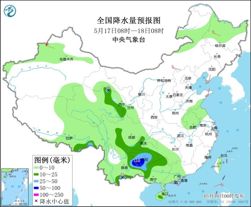 另外,5月18日至21日,西南地區(qū)東南部、華南、江南、江漢等地將出現(xiàn)一次強降雨過程,部分地區(qū)有暴雨,江南南部、華南等地局部有大暴雨;上述部分地區(qū)有短時強降水,局地有雷暴大風(fēng)等強對流天氣。