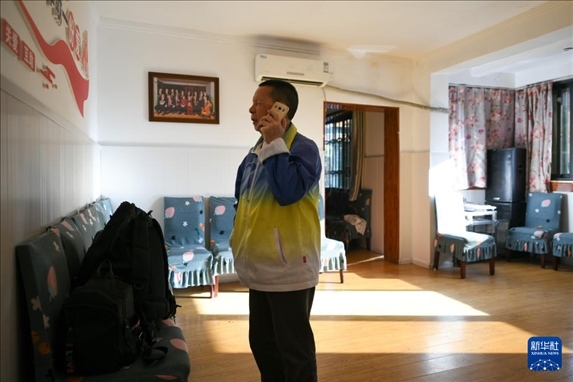 5月13日,在出發(fā)前往周年慶前,張世維在家中聯(lián)系現(xiàn)場細(xì)節(jié)。新華社記者 胥冰潔 攝