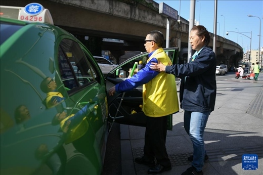 5月13日,張世維在成都雷鋒車隊(duì)志愿者幫助下乘車前往周年慶活動(dòng)現(xiàn)場。新華社記者 胥冰潔 攝