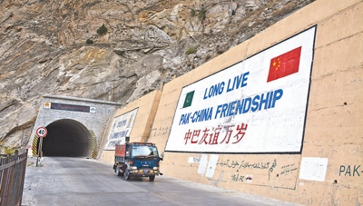 為保障喀喇昆侖公路暢通,巴中兩國(guó)工程人員正在進(jìn)行施工。本報(bào)巴基斯坦分社 賽義德·邁赫迪攝