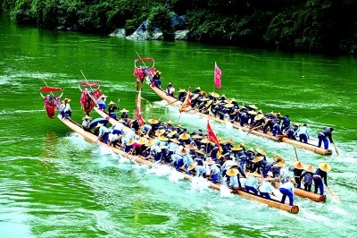 每年農(nóng)歷五月,在貴州省黔東南苗族侗族自治州的清水江流域,當(dāng)?shù)氐拿缱迦罕姸紩e辦苗族獨木龍舟節(jié)。龍舟節(jié)以水上龍舟競渡為載體,融合了苗族服飾文化、歌舞文化、飲食文化等,數(shù)百年經(jīng)久不衰,沿襲至今。2008年,苗族獨木龍舟節(jié)便被列入第二批國家級非物質(zhì)文化遺產(chǎn)代表性項目名錄。