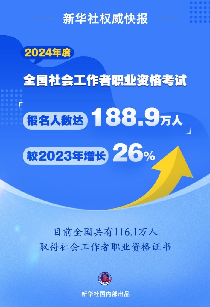 新華社北京6月16日電(記者馮家順)2024年度全國(guó)社會(huì)工作者職業(yè)資格考試于6月15日至16日舉行。記者16日從中央社會(huì)工作部獲悉,今年考試報(bào)名人數(shù)達(dá)188.9萬(wàn)人,較2023年增長(zhǎng)26%,再創(chuàng)歷史新高。