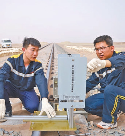 這里一年中有200多天風(fēng)沙肆虐,夏季氣溫超過50攝氏度,冬季氣溫低至零下30攝氏度。這里是中國鐵路烏魯木齊局集團(tuán)有限公司烏魯木齊西車輛段哈密動態(tài)檢測車間哈羅班組工作的地方。