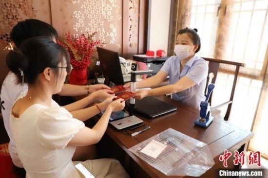 新人在七夕當(dāng)天領(lǐng)證結(jié)婚。蘇瑤 攝