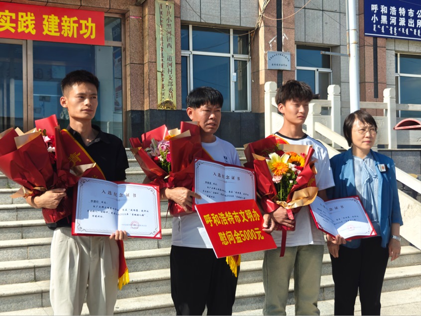 8月13日,張東霞來(lái)到玉泉區(qū)小黑河鎮(zhèn)西二道河村委會(huì),慰問(wèn)見義勇為的李春亞、李健壯、秦志翔3人,為他們送上鮮花、佩戴“青城好人”綬帶、頒發(fā)榮譽(yù)證書和“青城好人”獎(jiǎng)?wù)拢谟琛扒喑呛萌恕睒s譽(yù)稱號(hào),并給予5000元慰問(wèn)金,對(duì)他們?cè)谖ky時(shí)刻勇救他人的行為給予肯定和贊譽(yù)。