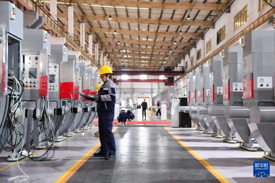10月23日,工作人員在位于陜西省渭南市高新區(qū)的陜西北人印刷機械有限責任公司生產車間組裝產品。