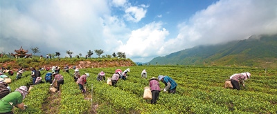 安溪是中國(guó)烏龍茶故鄉(xiāng)、世界名茶鐵觀音的發(fā)源地,全縣茶園面積60萬畝,干毛茶年產(chǎn)量6.2萬噸,曾獲中國(guó)國(guó)家級(jí)出口食品農(nóng)產(chǎn)品質(zhì)量安全示范區(qū)等榮譽(yù)。秋日艷陽(yáng)下,安溪縣西坪鎮(zhèn)柏葉村茶山青翠,茶農(nóng)林火財(cái)正穿梭在茶樹間,采擷鐵觀音秋茶?!安枞~是我們?cè)鍪罩赂坏摹鹑~子’,我們每年最盼望的就是采秋茶?!绷只鹭?cái)說。