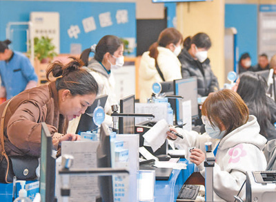 2月5日,安徽省銅陵市政務(wù)服務(wù)中心窗口工作人員為辦事群眾提供服務(wù)。