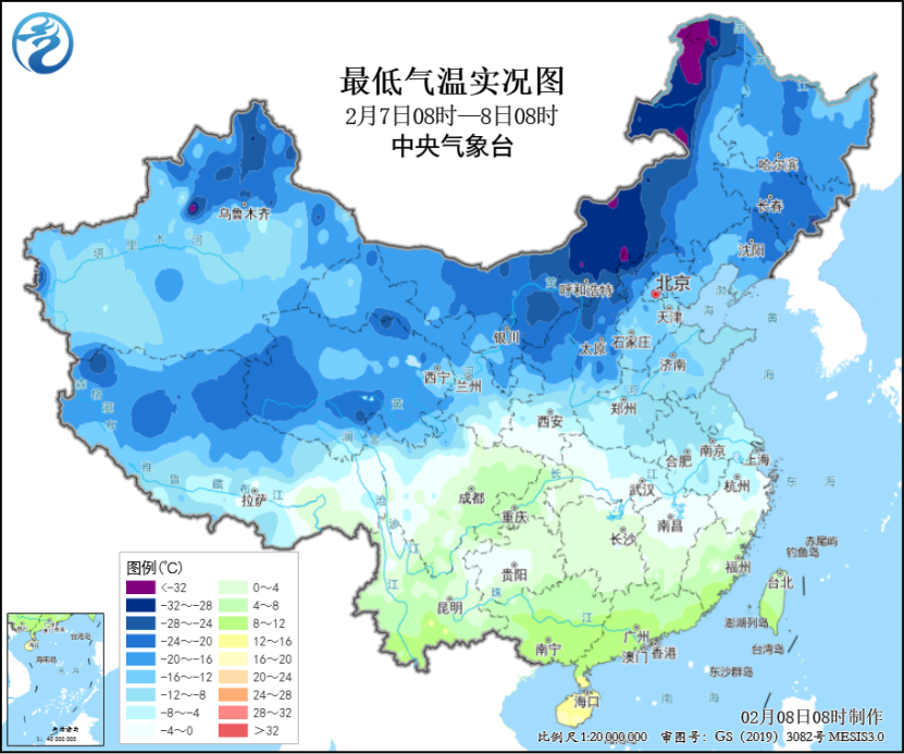 人民網(wǎng)北京2月8日電 (溫璐、高清揚(yáng))據(jù)中央氣象臺(tái)消息,昨日,受寒潮影響,內(nèi)蒙古中東部、華北、黃淮、江淮、江南北部及青藏高原等地部分地區(qū)出現(xiàn)大風(fēng)天氣,陣風(fēng)風(fēng)力有6~9級(jí),內(nèi)蒙古、北京、河北、山西、山東、浙江及青海、西藏等局地風(fēng)力達(dá)10~12級(jí)。同時(shí),北方大部地區(qū)經(jīng)歷入冬以來(lái)最冷一天,內(nèi)蒙古呼和浩特最低氣溫-26.5℃。今晨,河南南部、安徽、江蘇中南部、上海、浙江中北部、江西北部、湖北北部及內(nèi)蒙古東北部、黑龍江西北部等地出現(xiàn)6~10℃降溫,局地降溫幅度超過(guò)12℃。