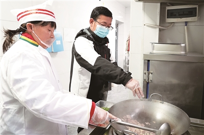 為了讓飯菜更適應(yīng)社區(qū)老年居民的口味,信義飯?zhí)玫淖鲲垘煾狄蔡匾庹{(diào)整了烹飪方法。“來(lái)這里吃飯的主要是老年人,所以我把飯菜做得軟軟的,同時(shí)也少油少鹽,讓他們吃得更健康?!闭趶N房忙碌的吳師傅笑著說(shuō)。他系著干凈的圍裙,說(shuō)話間,正熟練地翻炒著鍋里的菜,陣陣香味撲鼻而來(lái)。