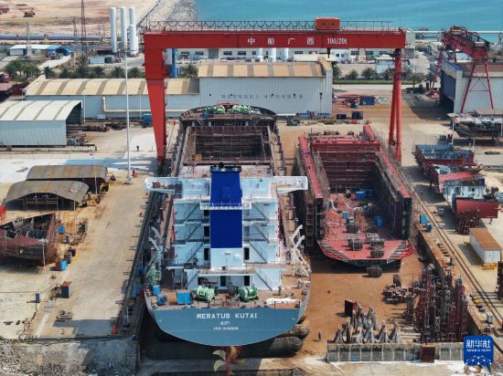 中國(guó)船舶集團(tuán)廣西造船有限公司船舶建造現(xiàn)場(chǎng)(3月20日攝,無(wú)人機(jī)照片)。