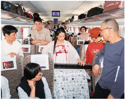 旅客乘坐“美麗中國鄉(xiāng)村游”康養(yǎng)旅游專列。