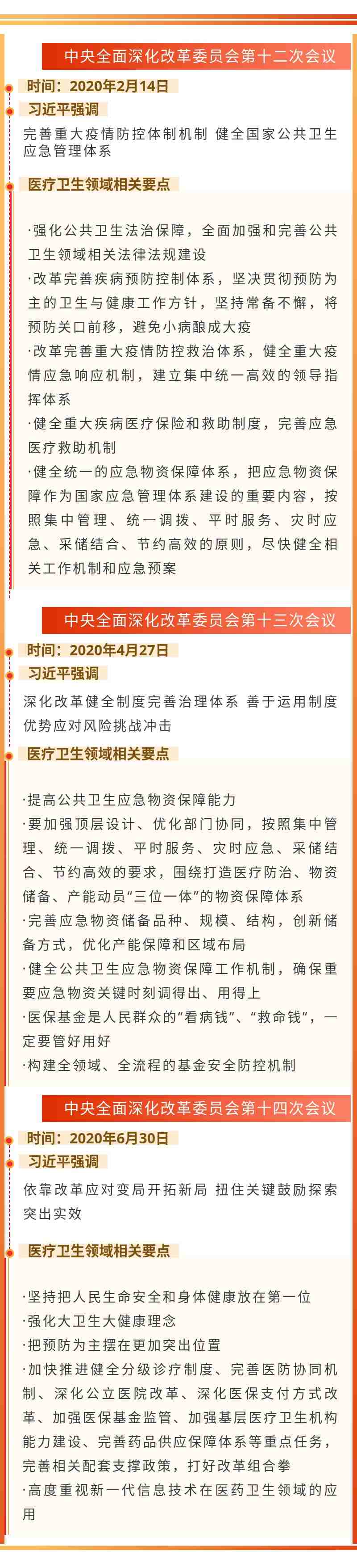 醫(yī)療保障制度和體系,是中央深改委會議長期關(guān)注的內(nèi)容。新冠肺炎疫情來襲后,中央針對因疫情暴露出來的醫(yī)療衛(wèi)生體系的短板和不足,立足當(dāng)前、放眼長遠,圍繞這一重大改革主題,作了出全面動員、全面部署。