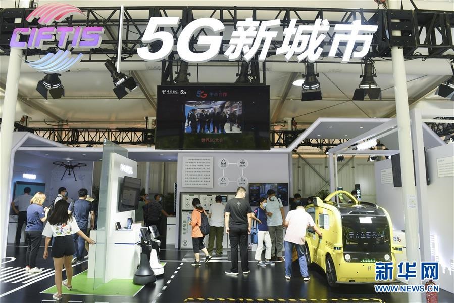 觀眾在2020年中國(guó)國(guó)際服務(wù)貿(mào)易交易會(huì)5G通信服務(wù)專題展區(qū)參觀(2020年9月7日攝)。新華社記者魯鵬攝