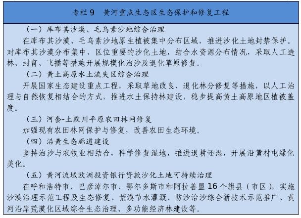 大力推進黃河生態(tài)帶建設(shè),統(tǒng)籌水環(huán)境、水生態(tài)、水資源、水安全、水文化,推進干支流一體化治理,突出抓好十大孔兌、多沙粗砂區(qū)集中來源區(qū)等水土保持治理,實施河道和灘區(qū)綜合提升治理工程,完善水沙調(diào)控機制。深化“一湖兩海”及察汗淖爾生態(tài)環(huán)境綜合治理,創(chuàng)新區(qū)域系統(tǒng)治理和流域整體治理舉措,逐步改善生態(tài)環(huán)境。全面加強嫩江、遼河、內(nèi)陸河水系等流域和達里諾爾、烏拉蓋等濕地生態(tài)保護修復(fù),深入開展地下水超采綜合治理。