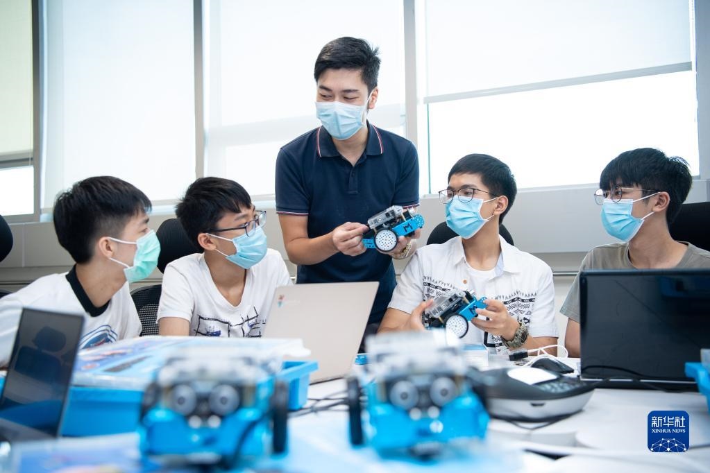 2020年7月14日,創(chuàng)業(yè)者吳以航在澳門青年創(chuàng)業(yè)孵化中心為學(xué)生上培訓(xùn)課?!?0后”吳以航是澳門青年創(chuàng)業(yè)孵化中心會(huì)員,2019年,他進(jìn)駐廣州市天河區(qū)港澳青年之家,成立藍(lán)點(diǎn)教育技術(shù)(廣州)有限公司。新華社記者張金加攝