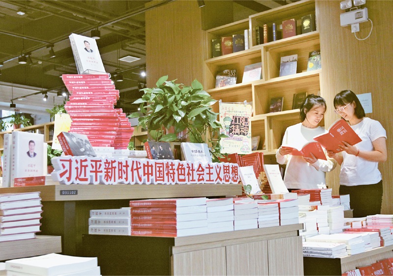 黨確立習(xí)近平同志黨中央的核心、全黨的核心地位,確立習(xí)近平新時(shí)代中國特色社會主義思想的指導(dǎo)地位,反映了全黨全軍全國各族人民共同心愿,對新時(shí)代黨和國家事業(yè)發(fā)展、對推進(jìn)中華民族偉大復(fù)興歷史進(jìn)程具有決定性意義。圖為2021年10月4日,河南省焦作市博愛縣新華書店里,讀者在閱讀習(xí)近平新時(shí)代中國特色社會主義思想相關(guān)書籍?!≈行律绨l(fā) 程全/攝