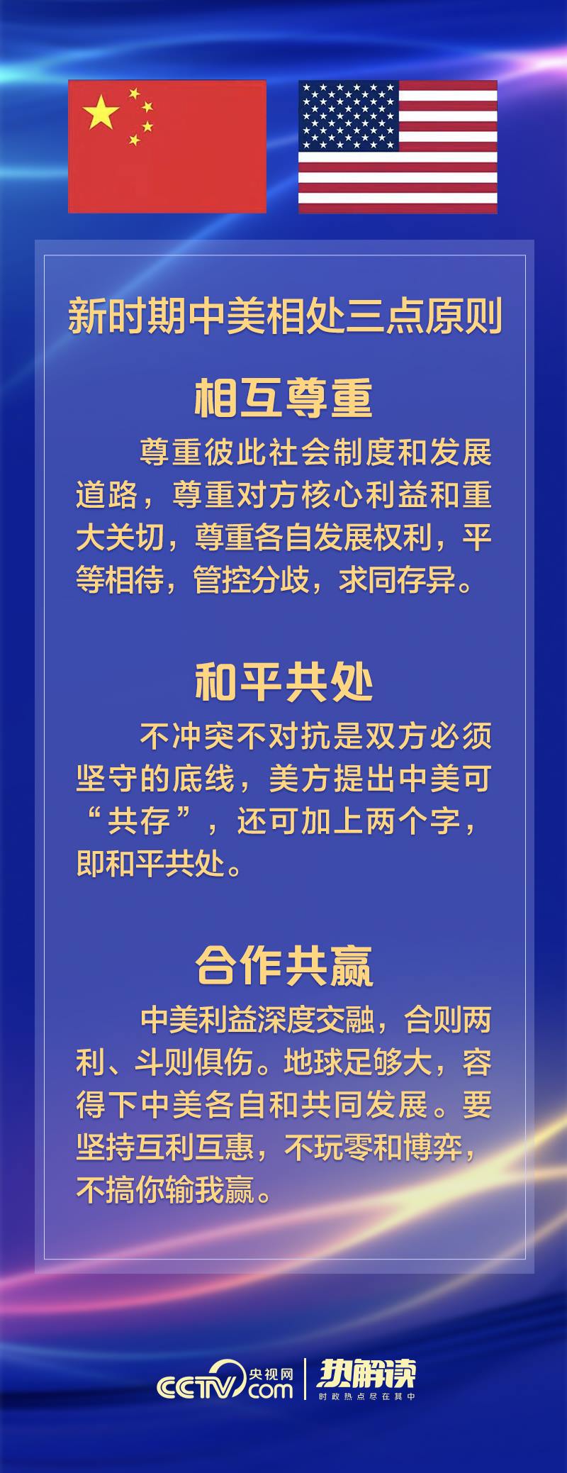 中美關(guān)系如何健康發(fā)展?習(xí)近平主席用12個(gè)字指明原則,即相互尊重、和平共處、合作共贏。