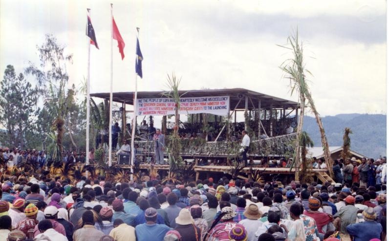 圖為1998年,在巴新的菌草技術(shù)重演示范試驗(yàn)成功現(xiàn)場會現(xiàn)場。(國家菌草工程技術(shù)研究中心供圖)