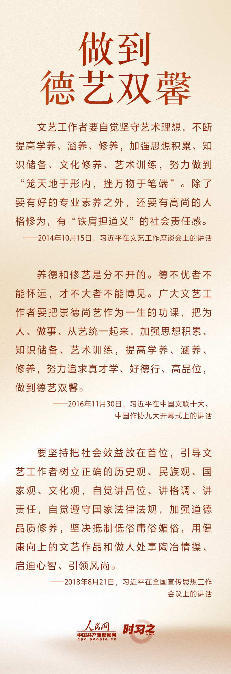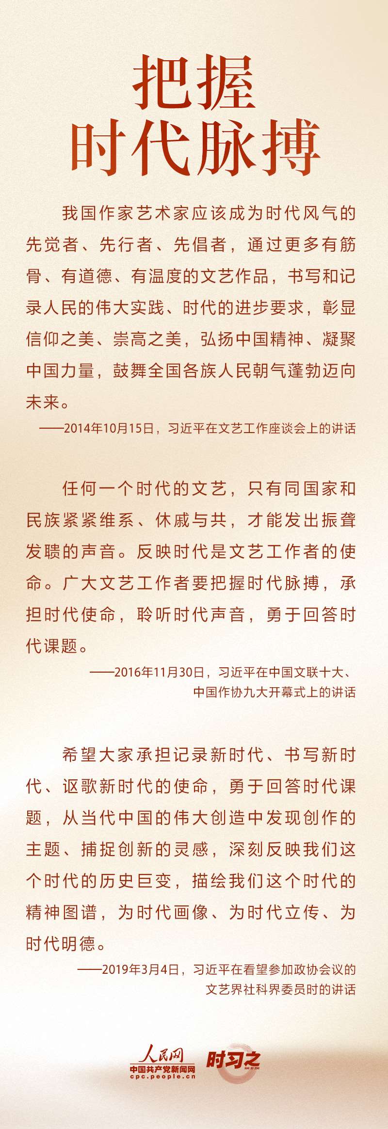 文運(yùn)同國(guó)運(yùn)相牽,文脈同國(guó)脈相連。新時(shí)代文藝工作者承擔(dān)著記錄新時(shí)代、書寫新時(shí)代、謳歌新時(shí)代的重大使命。“文藝是鑄造靈魂的工程,文藝工作者是靈魂的工程師?!秉h的十八大以來(lái),習(xí)近平不斷激勵(lì)文藝工作者不辜負(fù)時(shí)代召喚、不辜負(fù)人民期待,以德服人、以文化人。