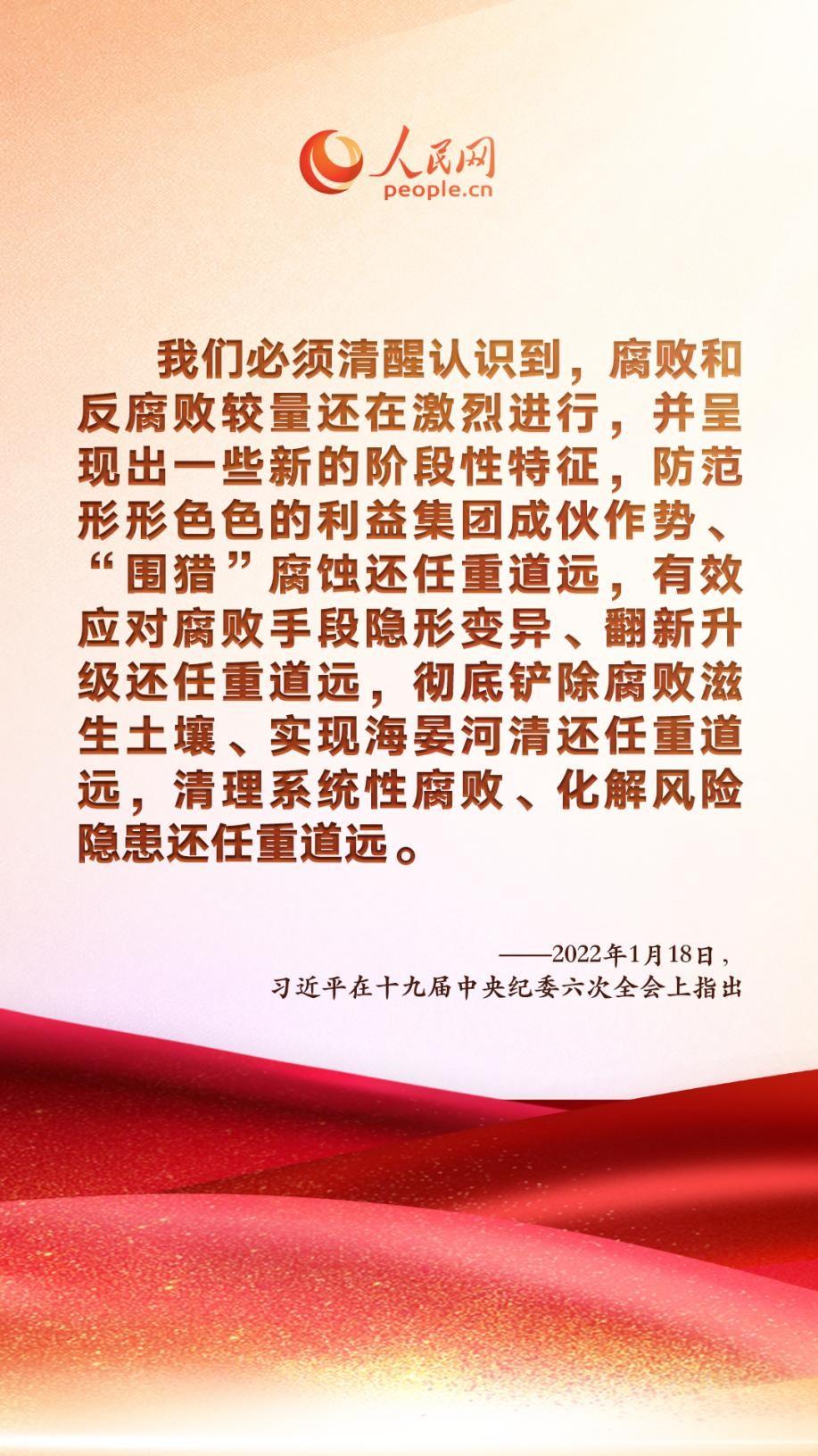 “要保持反腐敗政治定力,不斷實(shí)現(xiàn)不敢腐、不能腐、不想腐一體推進(jìn)的戰(zhàn)略目標(biāo)?!敝泄仓醒肟倳?、國家主席、中央軍委主席習(xí)近平在十九屆中央紀(jì)委六次全會上發(fā)表重要講話,深刻總結(jié)新時代黨的自我革命的成功實(shí)踐,深刻闡述全面從嚴(yán)治黨取得的歷史性、開創(chuàng)性成就,產(chǎn)生的全方位、深層次影響,對堅(jiān)持不懈把全面從嚴(yán)治黨向縱深推進(jìn)、迎接黨的二十大勝利召開作出戰(zhàn)略部署。