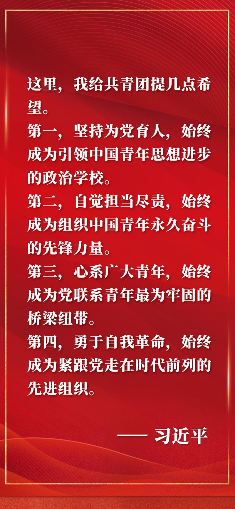 慶祝中國共產(chǎn)主義青年團(tuán)成立100周年大會10日上午在北京人民大會堂隆重舉行。中共中央總書記、國家主席、中央軍委主席習(xí)近平在會上發(fā)表重要講話,全面回顧百年來共青團(tuán)堅定不移聽黨話、跟黨走的奮斗歷程,深刻闡明共青團(tuán)和青年工作的寶貴經(jīng)驗,對當(dāng)代青年寄予殷切期望,對做好新時代共青團(tuán)工作提出明確要求。