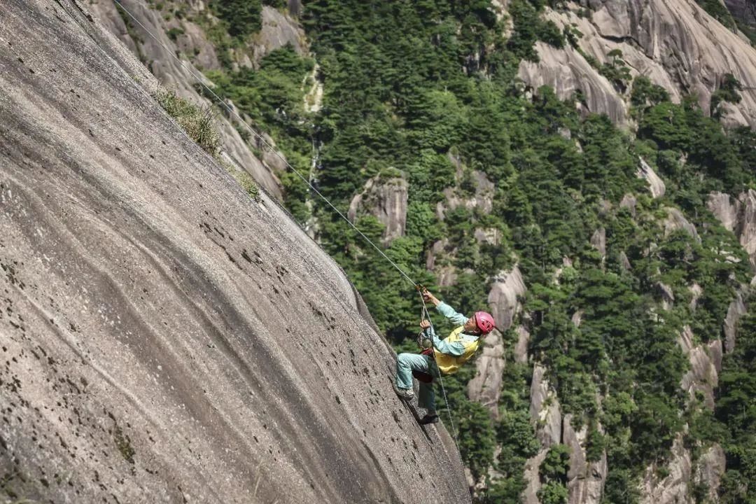 經(jīng)過專業(yè)訓練和實地操作之后,李培生對這份工作已是駕輕就熟,憑借一根繩索,在峭壁上行走自如。在旅游旺季,他每天要放繩七八次,上下一趟需要一個小時左右,這對體力和耐力都有著極大的考驗。