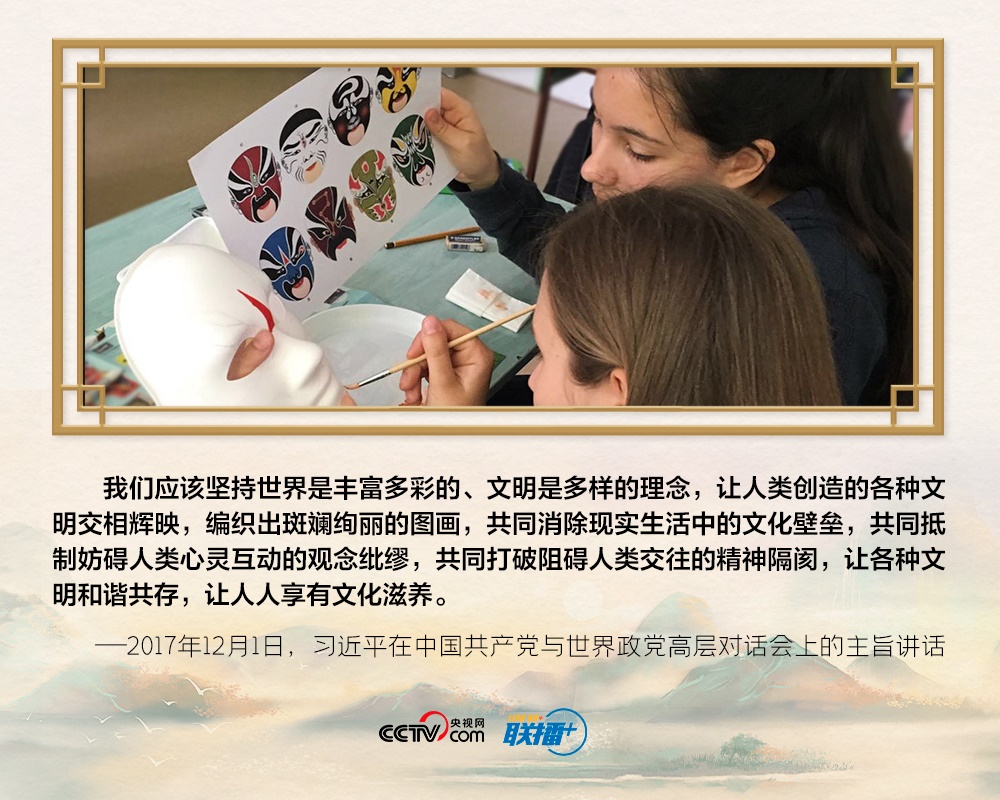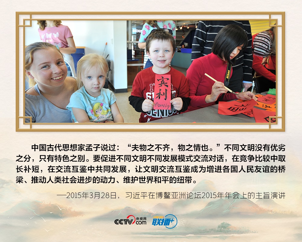 央視網(wǎng)《聯(lián)播+》推出精美海報(bào),與您一起學(xué)習(xí)領(lǐng)悟習(xí)主席的文明交流觀。