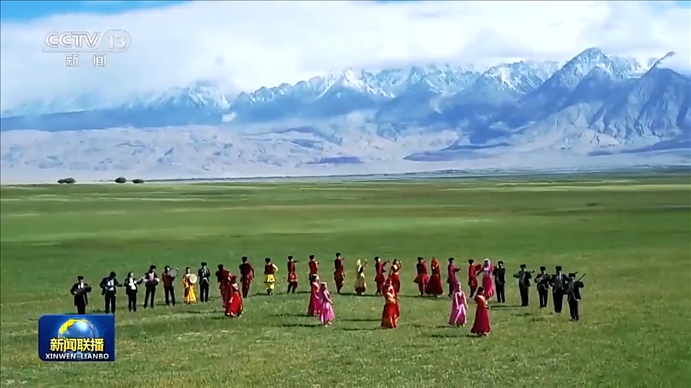 無限熱愛人民,矢志造福人民。關(guān)山內(nèi)外,千里萬里。駐足處,溫暖牽掛抵人心。